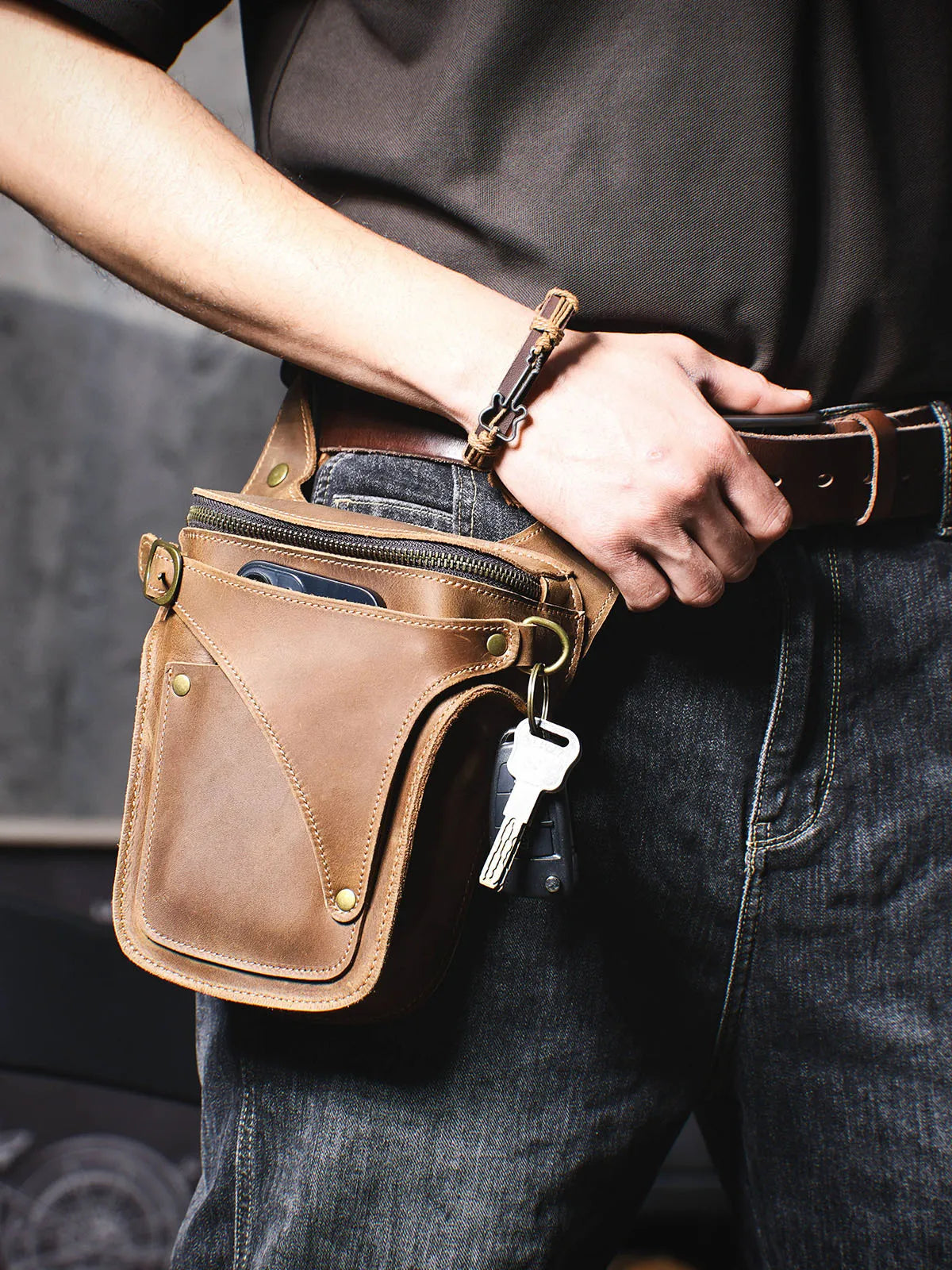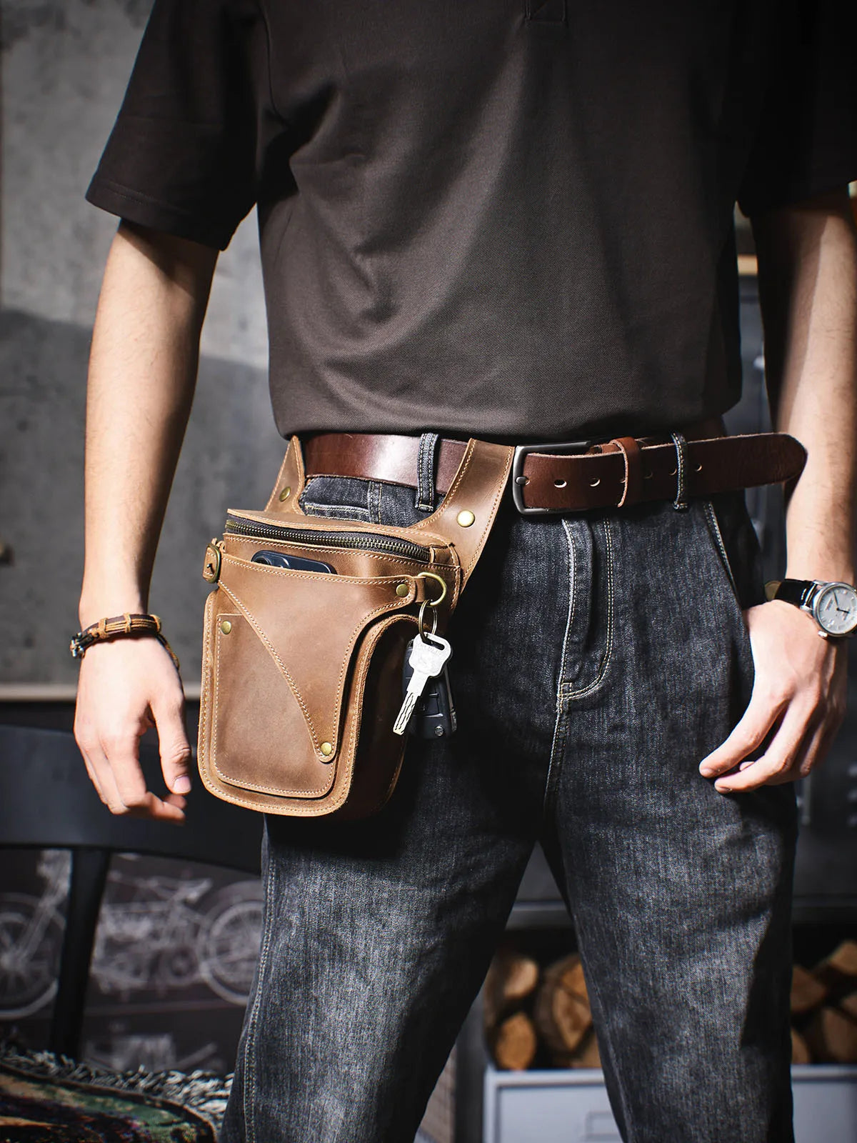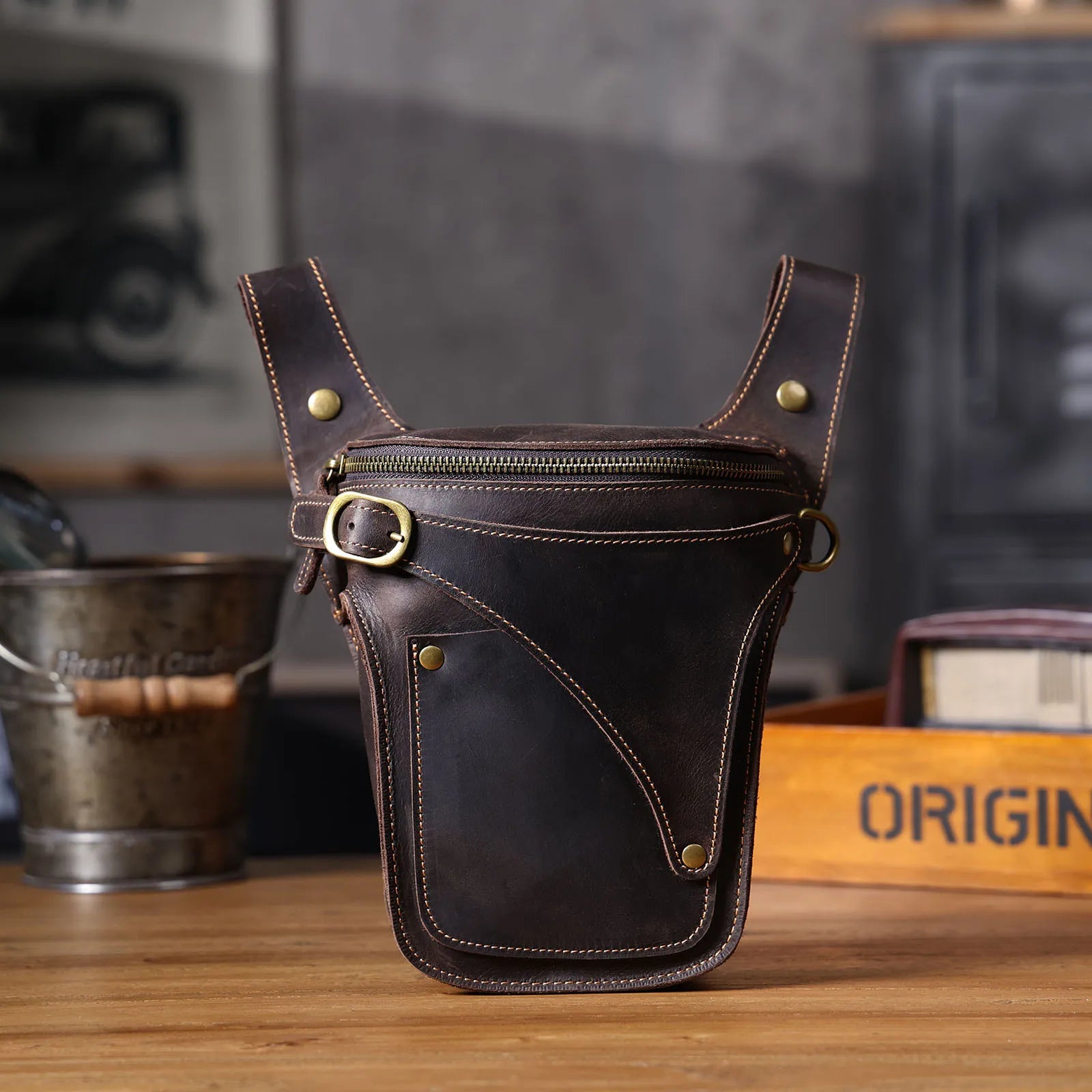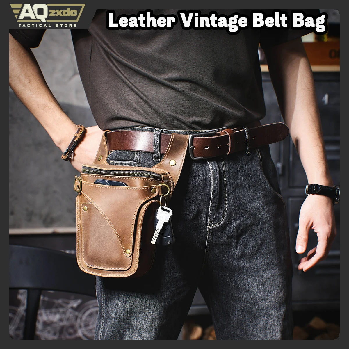 Men's Leather Vintage Belt Bag Multipurpose Tactical Waist Pack Outdoor Travel Motorcycle Bicycle Riding Drop Leg Bag Bum Pack