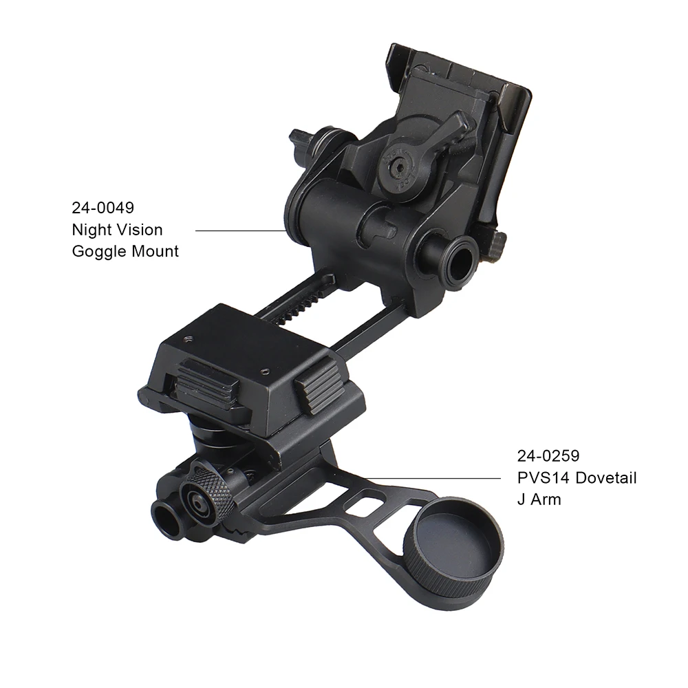The PVS-14 J-Arm NVG Mount Adapter GS24-0259 provides a sturdy and dependable interface for users who need to attach their PVS-14 monocular to helmet-mounted dovetail systems. Made with durable aerospace-grade materials, this adapter is built for demanding hunting, airsoft, and nighttime operations where stability and precision are essential.