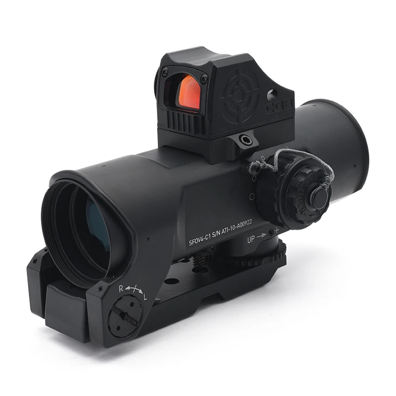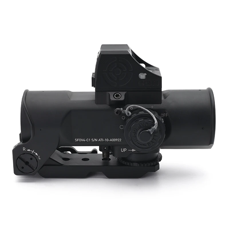The primary scope offers a fixed 4× magnification paired with a 32mm objective lens, providing a bright and sharp sight picture. Ideal for hunting, training, and tactical scenarios, this optical setup helps shooters acquire targets at distance with confidence and stability.