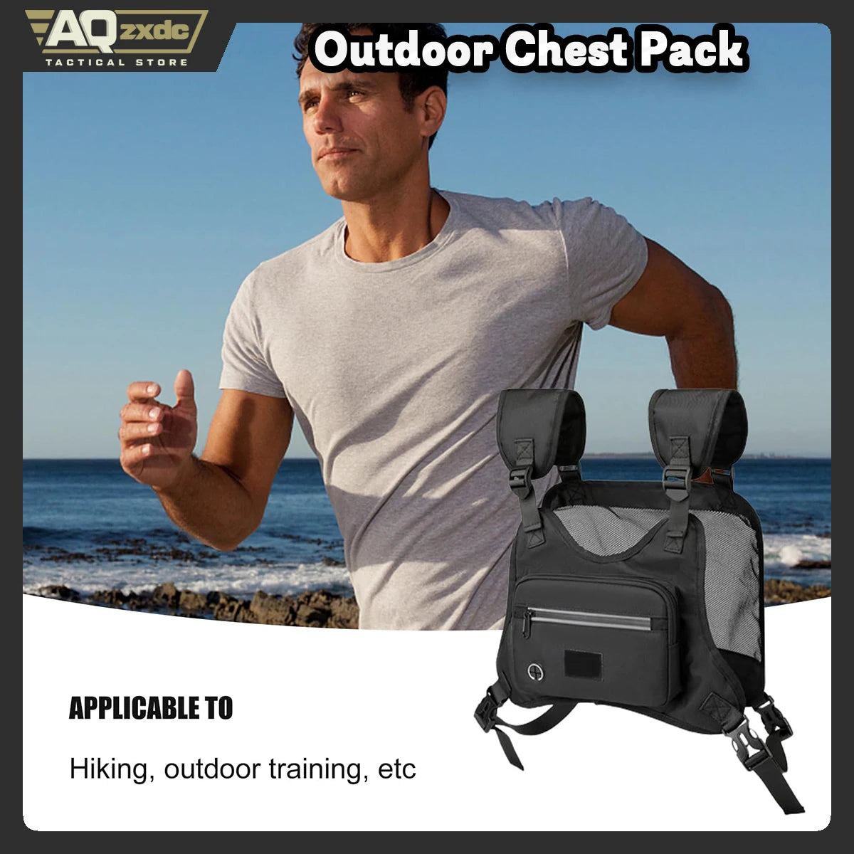 Outdoor Chest Bag, Running Backpack Vest with Phone Holder Pocket Extra Storage, Lightweight Water Resistant Chest Organizer