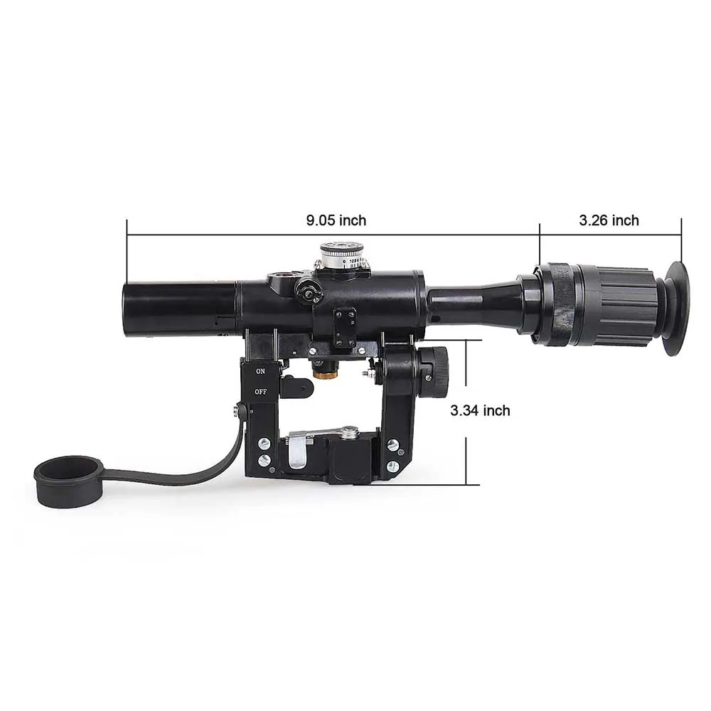 The rifle scope includes a range-setting scale up to 1000 meters and a ±10 mil deflection adjustment, giving shooters fine control over their point of aim. These precision features help achieve better accuracy across various distances, making the scope suitable for both beginners and experienced marksmen.