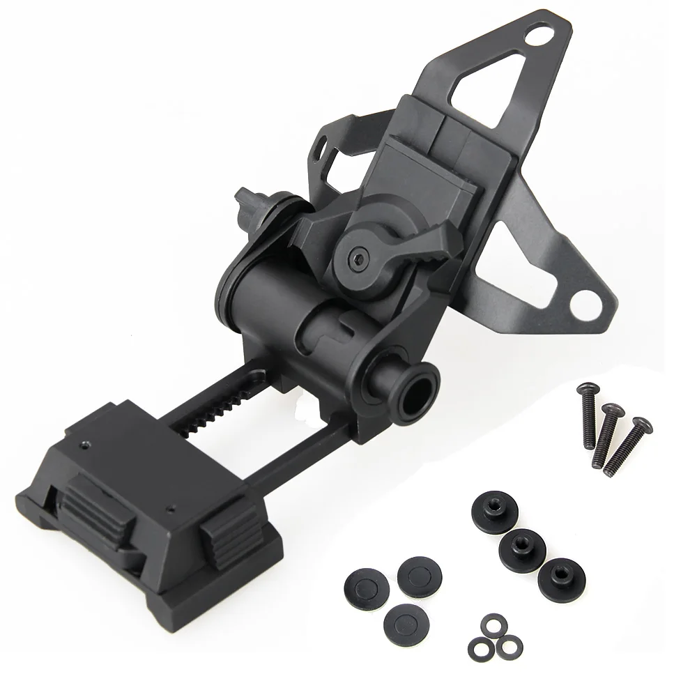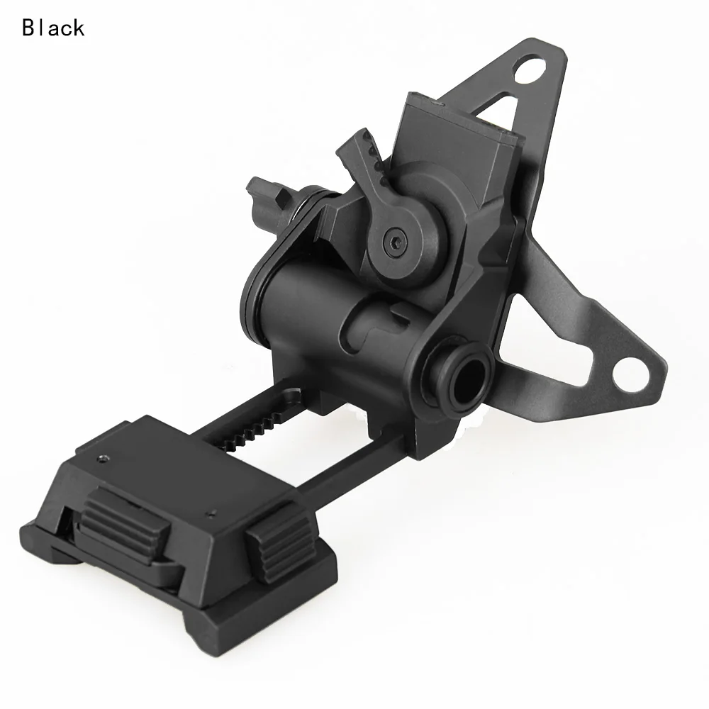 Available in black, tan, and silver, it fits securely on common tactical helmet platforms, providing a stable mounting point for night vision during: