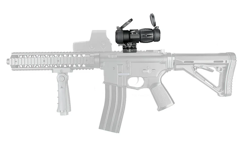 Equipped with a robust flip-up / flip-to-side mount, this magnifier allows instant transitions between magnified and unmagnified views. Press the side mechanism and rotate—your sight picture shifts immediately without needing to adjust your rifle position.