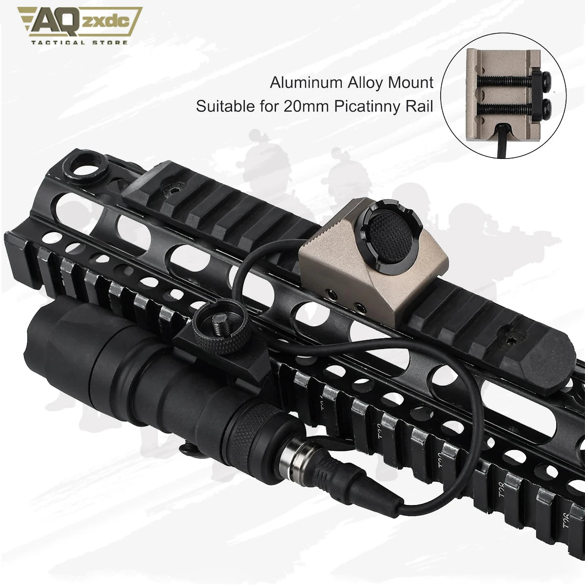 Aluminum alloy mount, metallic texture, durable, can be mounted on Mlok or Keymod Rail.