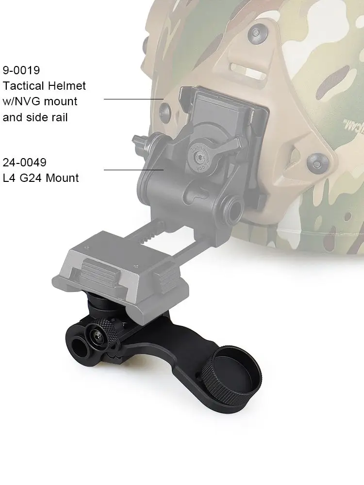 With a 10-inch (25cm) rolling guide, the mount allows fine adjustment for proper eye placement and viewing angle. Users can easily position the NVG exactly where needed for maximum clarity and ease of use in varying conditions.
