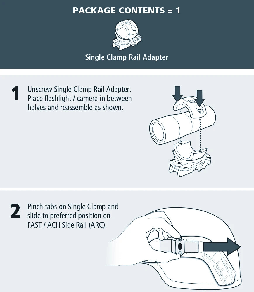 Single Clamp Rail Adaptor, Tactical Flashlight Accessories, Attaches to FAST/ACH/MICH Street Helmets, Fits 20-33MM Torches