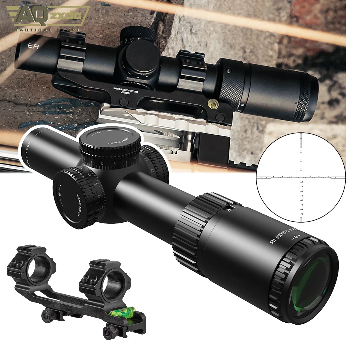 Tactical 1.2-6x24 Scope with 25mm Scope Bracket IR Portable Outdoor Hunting Telescope for Airgun Hunting Paintball Accessories