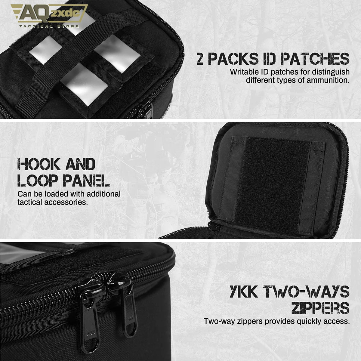 Tactical Ammo Bag, Detachable Inner Space Ammunition Carrier Pouch with ID Patches Ammos Transportation Bag for Pistol Rifle
