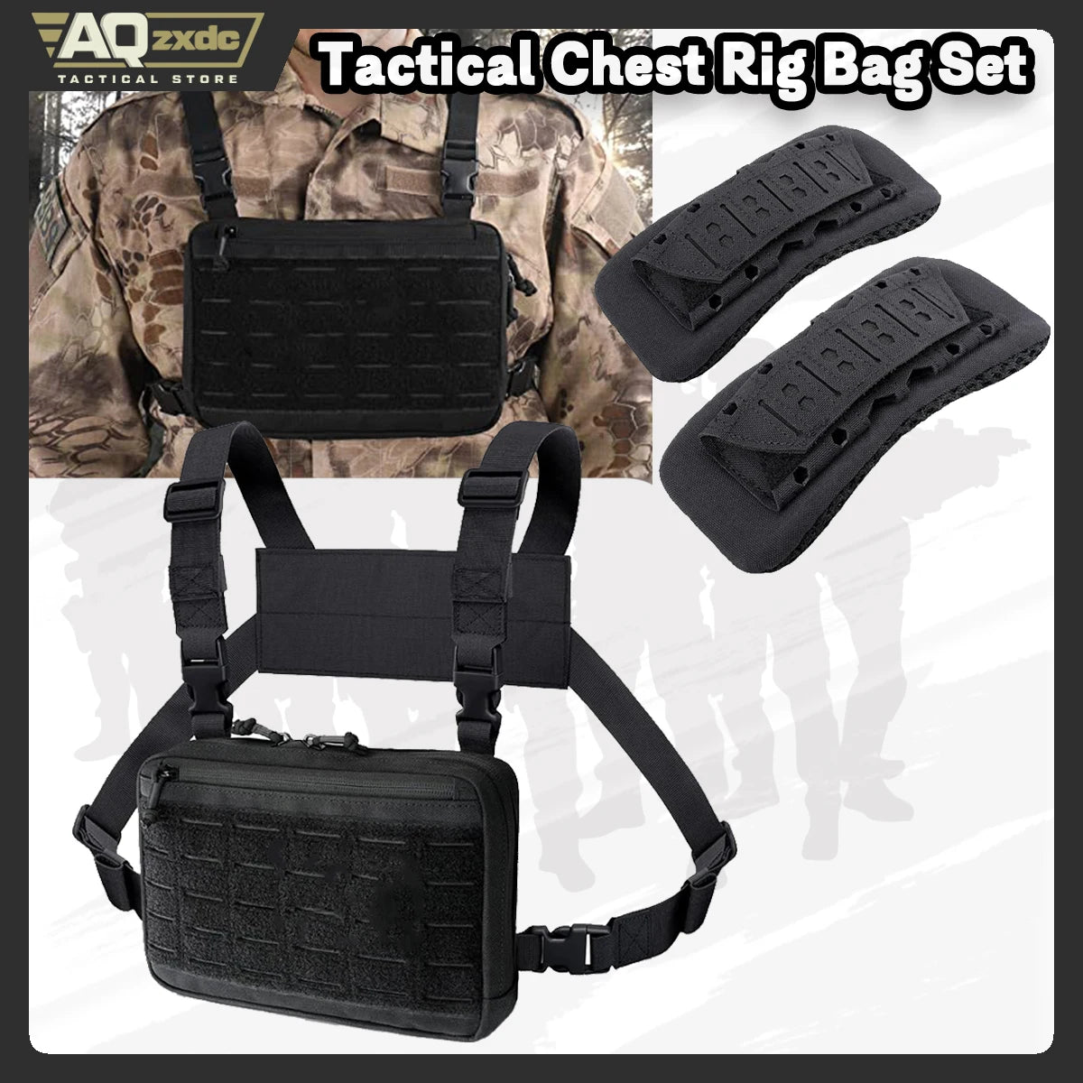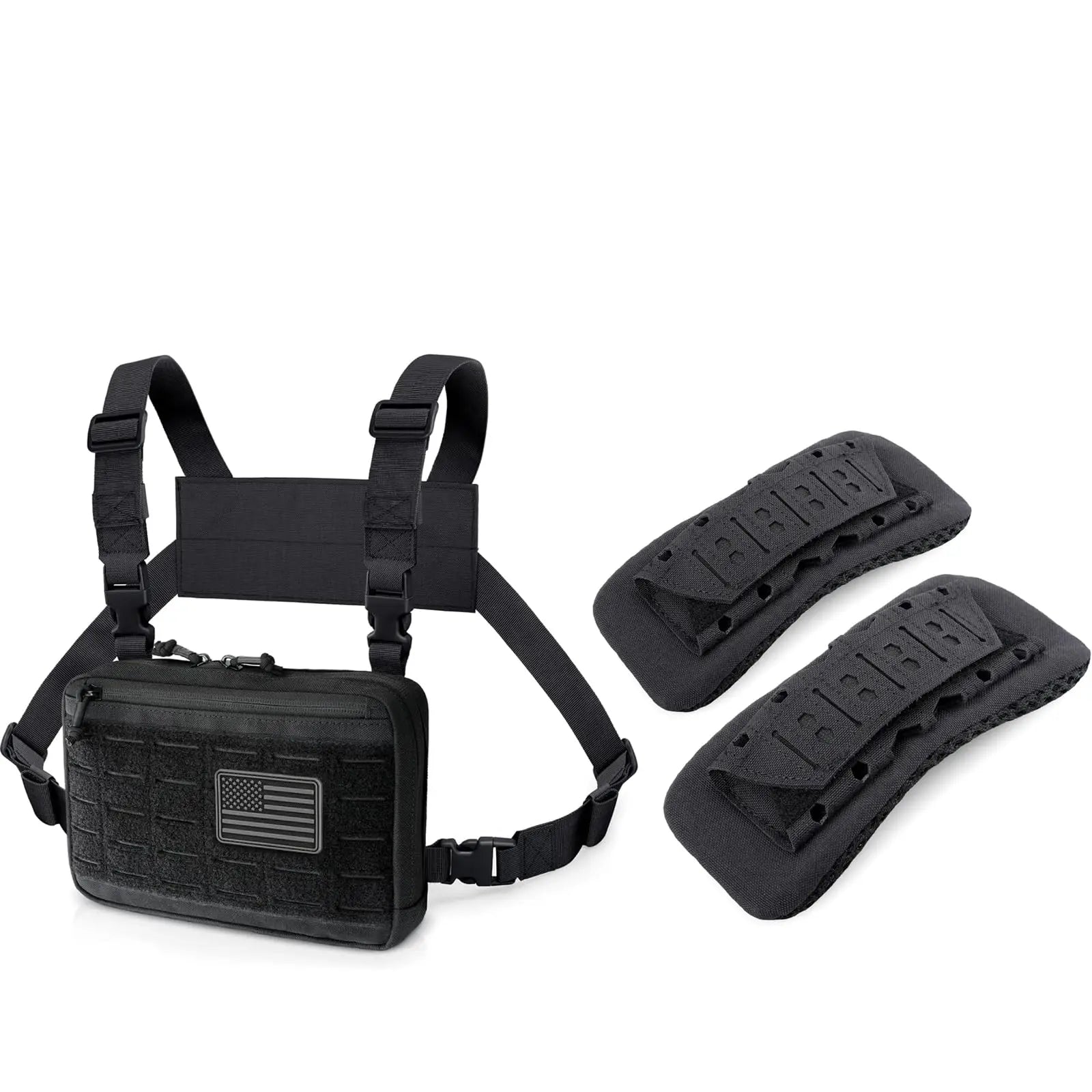 Tactical Chest Rig Bag Set, 2 Pack Shoulder Strap Pad for Vest Carrier, MOLLE Chest Pouch Utility Recon Kit Bag Vest Accessories