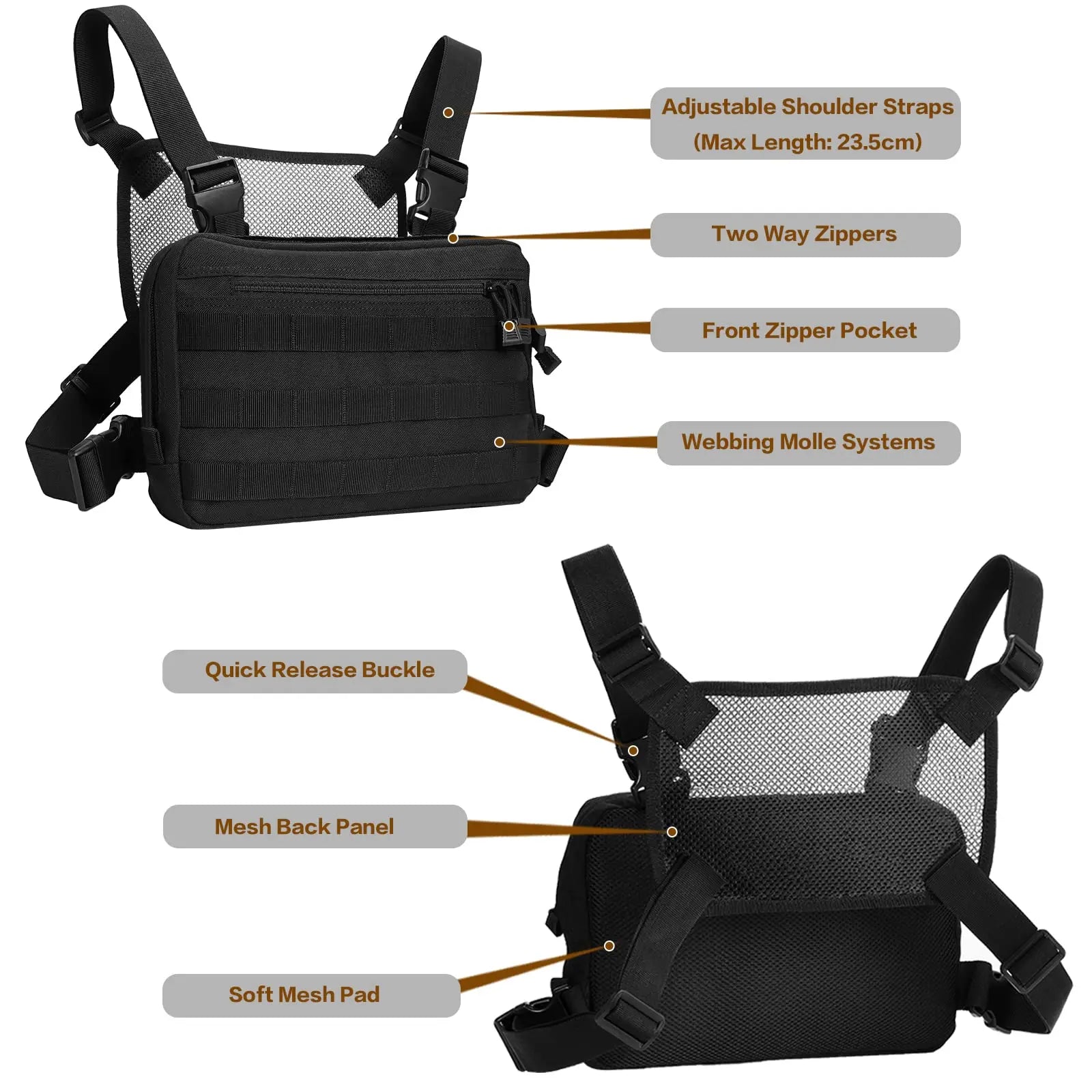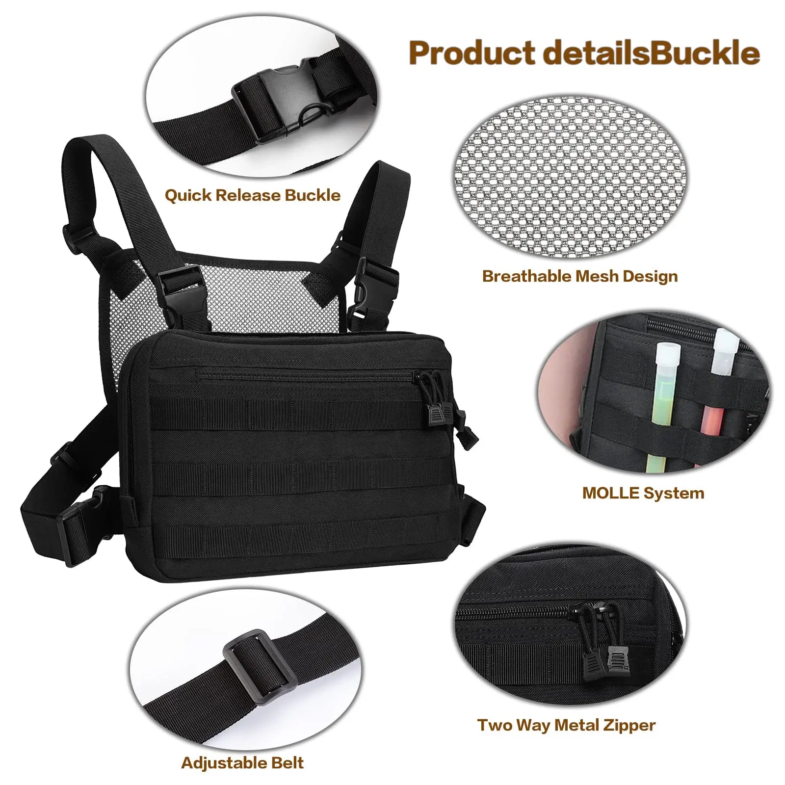 Tactical Chest Rig Molle Chest Rig Bag Chest Rig Airsoft, Radio Chest Harness Holder Holster Vest for Two Way Radio Walkie Talki
