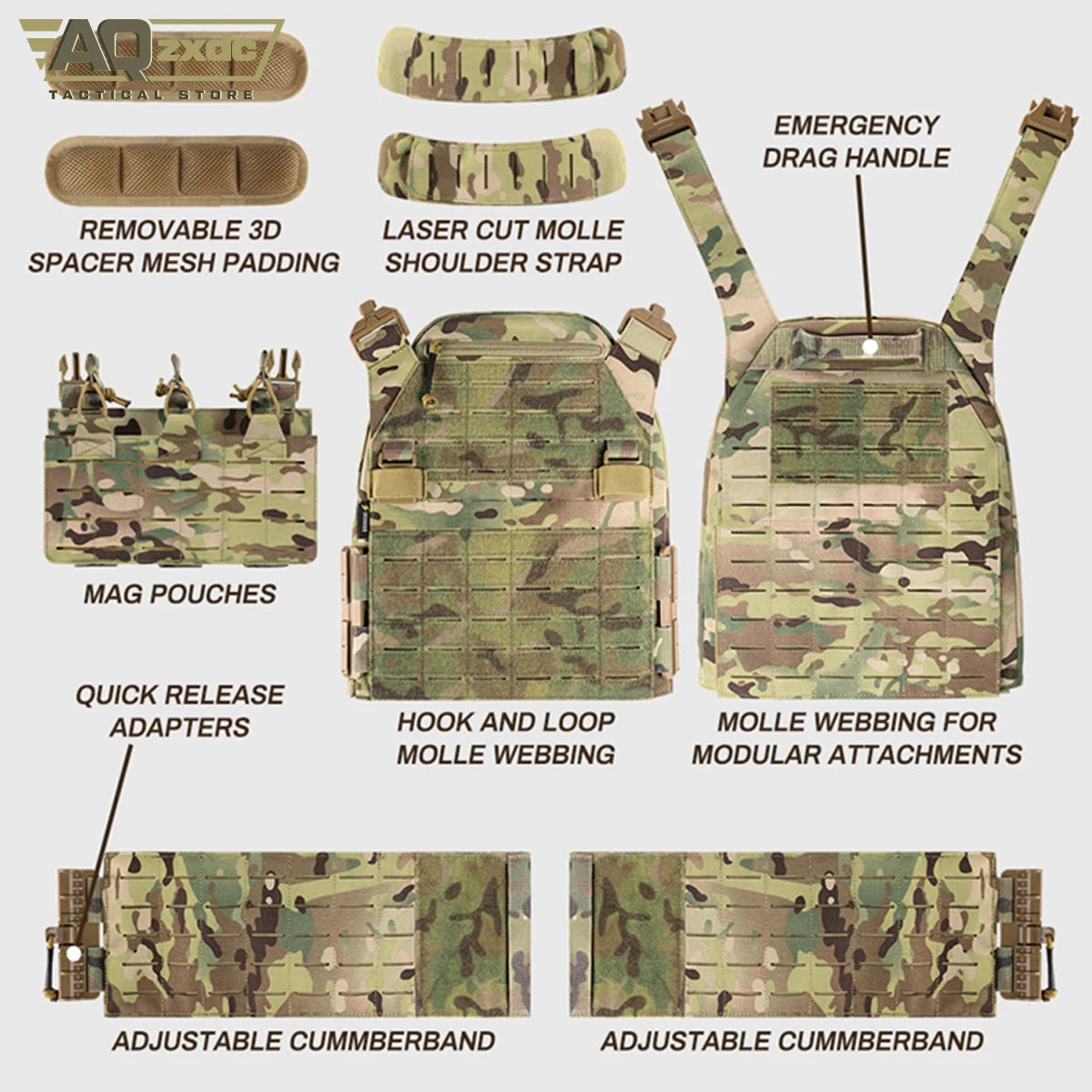 Tactical GBRS LBT V2 Lightweight Tactical Plate Carrier with Molle Quick Release Protective Vest for Outdoor Paintball Game