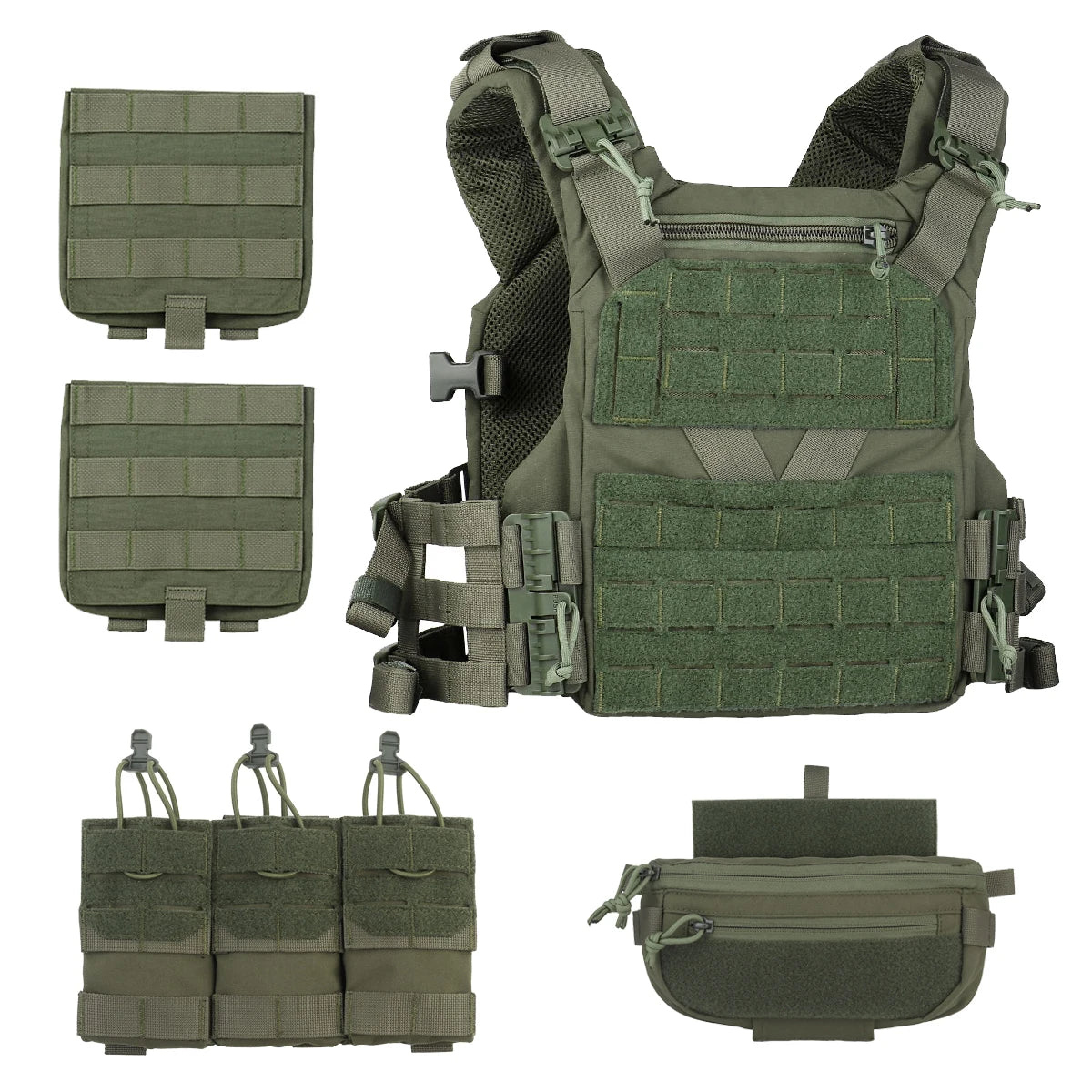 Tactical K19 Plate Carrier Set with Triple Magazine Pouch & Multifunctional Underbelly Pouch, Suitable for Airsoft Paintball CQB