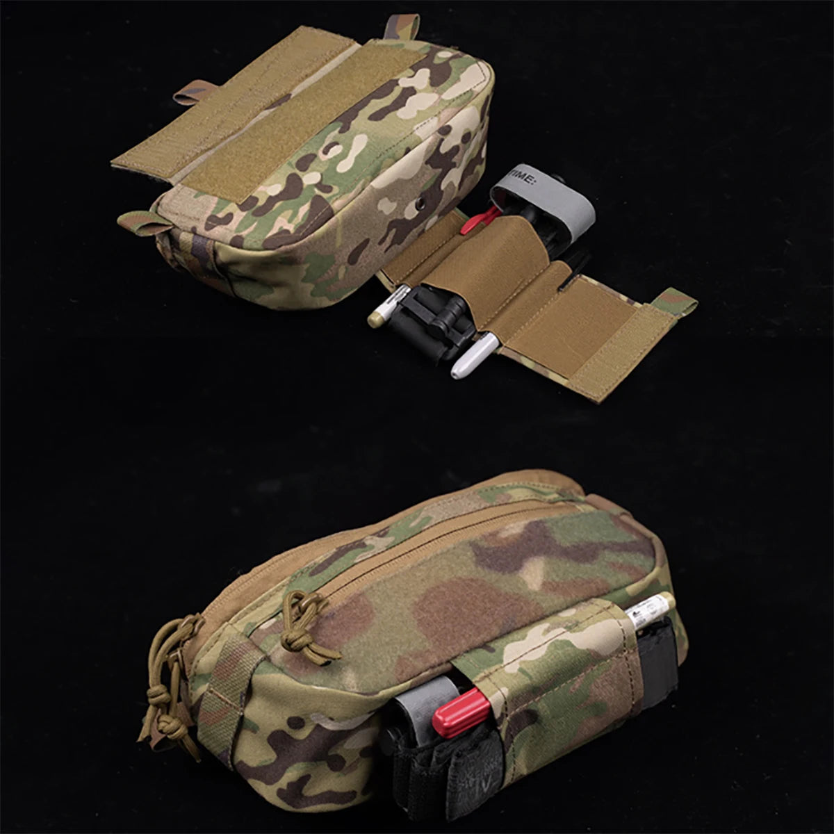 ➤ The newly upgraded design of the multi-functional lower abdomen bag can store tourniquets and other first aid supplies externally. The double-open zipper can be opened with one hand. The bag is equipped with Velcro fleece and elastic bands to facilitate fixing various objects. Installed on the Velcro-covered The tactical vest is equipped with an adapter strap to serve as a sling bag, turning it into a waist bag for daily use.