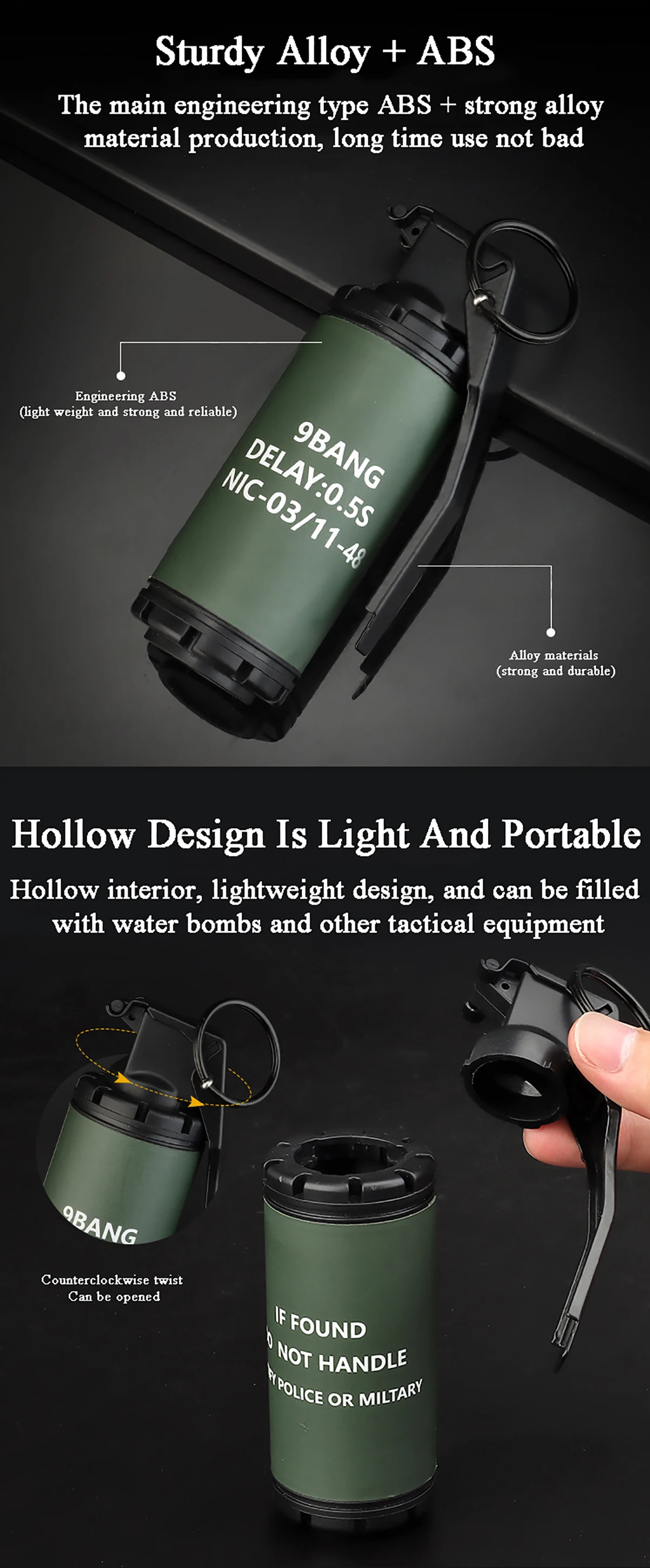 Crafted from a solid combination of alloy and ABS material, this grenade model is built to withstand long-term use without breaking or deforming. The robust shell offers a realistic feel while remaining lightweight enough for comfortable all-day wear during games, training sessions, or outdoor activities.