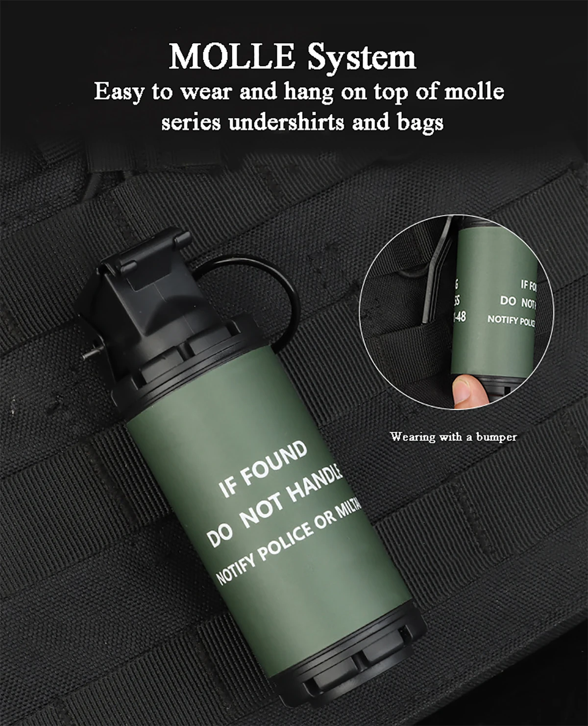 With its sturdy construction, MOLLE compatibility, and useful storage capacity, the Tactical Smoke Grenade Model Fillable Container is a versatile accessory for anyone looking to elevate their tactical setup or game experience.