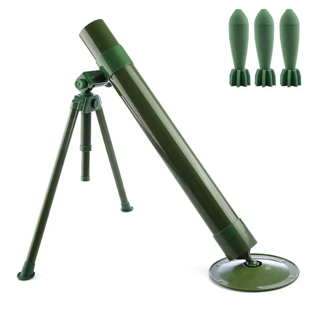 Tactical Toy Set, 60 mm Tactical Mortar with Sponge Safety Pistol, Interesting Shooting Toy, Green 58.4 cm Airsoft Grenade Model